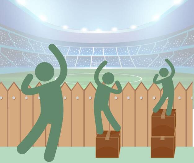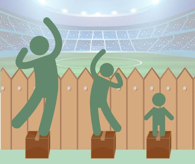 Hieronder wordt dit principe geïllustreerd aan de hand van drie afbeeldingen. In de eerste afbeelding zien we drie mensen die een sportwedstrijd willen bekijken, maar een schutting belemmert hun zicht. Ze krijgen allemaal hetzelfde kistje om op te staan. Dit lijkt eerlijk, maar het effect is ongelijk: niet iedereen kan de wedstrijd zien. In de middelste afbeelding wordt de ondersteuning afgestemd op de individuele behoeften. De kleinste persoon krijgt bijvoorbeeld twee kistjes, waardoor iedereen de wedstrijd kan volgen. Dit laat zien dat gelijke kansen ontstaan wanneer ondersteuning wordt aangepast aan wat ieder nodig heeft. Inclusief onderwijs gaat echter nog een stap verder. In plaats van steeds individuele oplossingen te bieden, kan ook het obstakel zelf worden aangepast of weggenomen, zoals te zien is in de derde afbeelding. Door het onderwijs vanaf het begin toegankelijk te ontwerpen, zijn minder aparte voorzieningen nodig en kan iedereen volwaardig deelnemen. Universal Design for Learning (UDL) biedt een kader om dit in de praktijk vorm te geven.